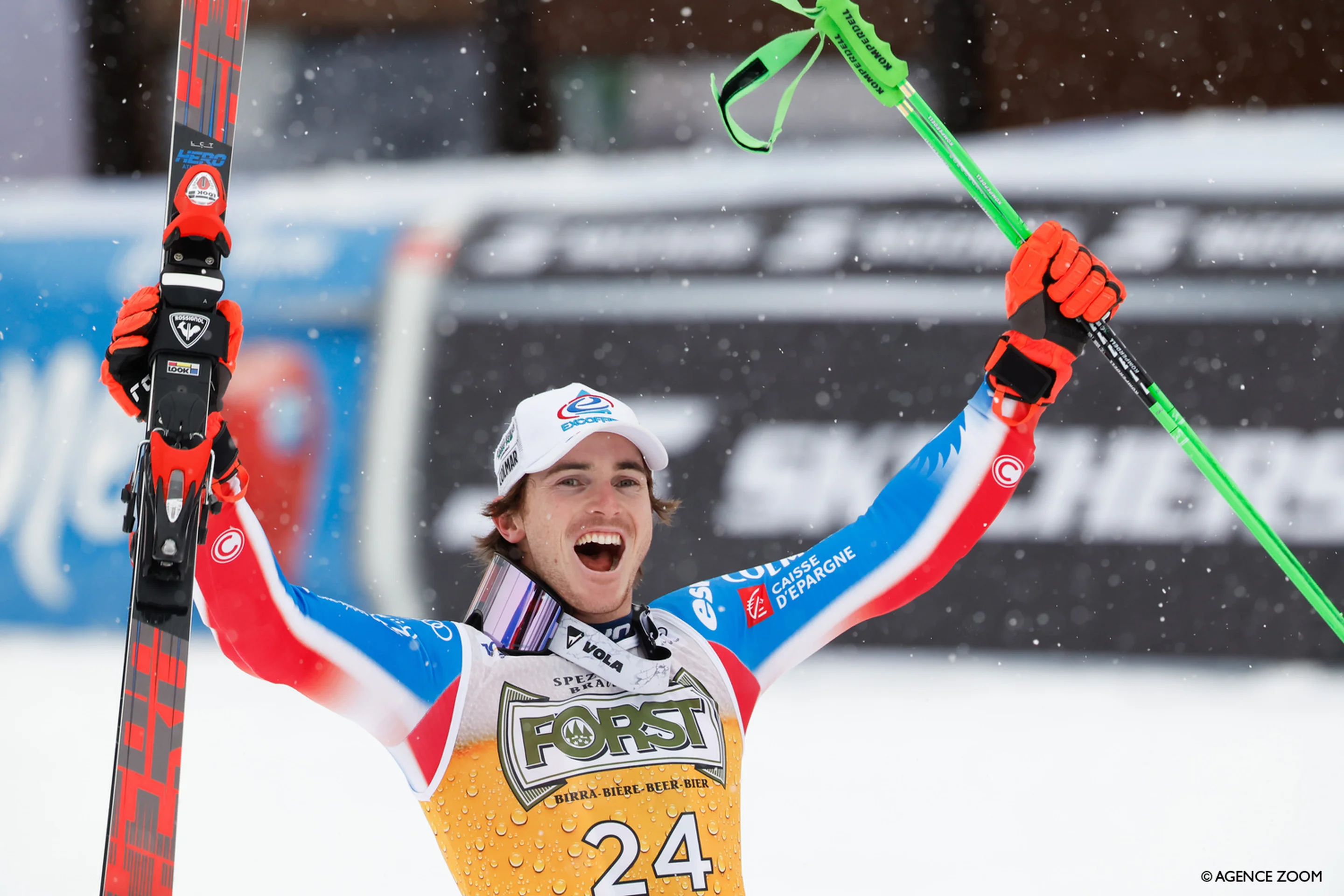 Leo Anguenot (FRA/ Rossignol) also had a day to remember: the 26-year-old secured his debut Audi FIS World Cup podium with a dazzling second run that moved him seven places up the order to finish second (+0.65 seconds behind Odermatt).