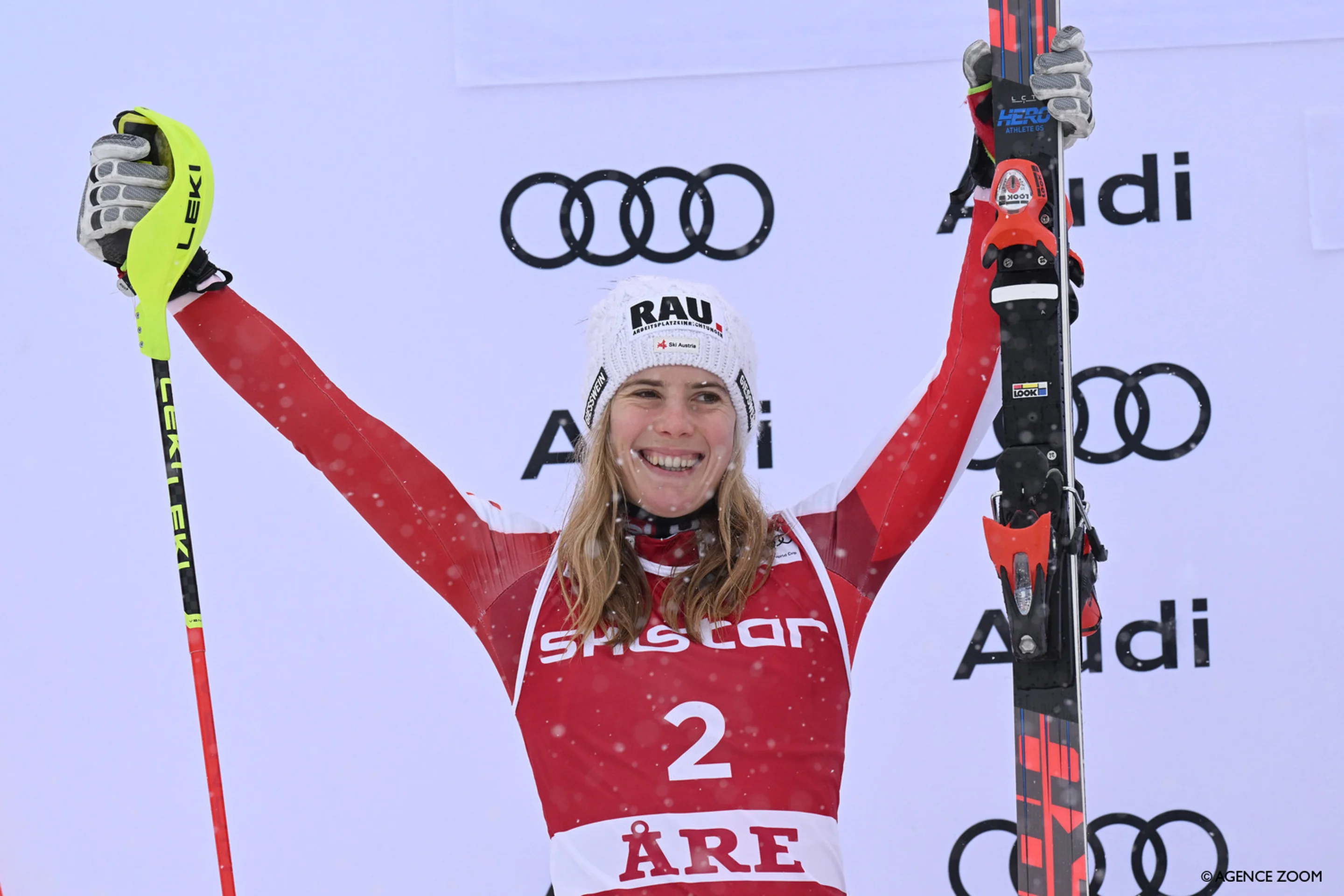 In Sweden, however, she showed a newfound confidence, perhaps inspired by a brilliant performance at the recent World Championships in Saalbach, where her Slalom run helped secure the bronze medal for Austria in the Team Combined.