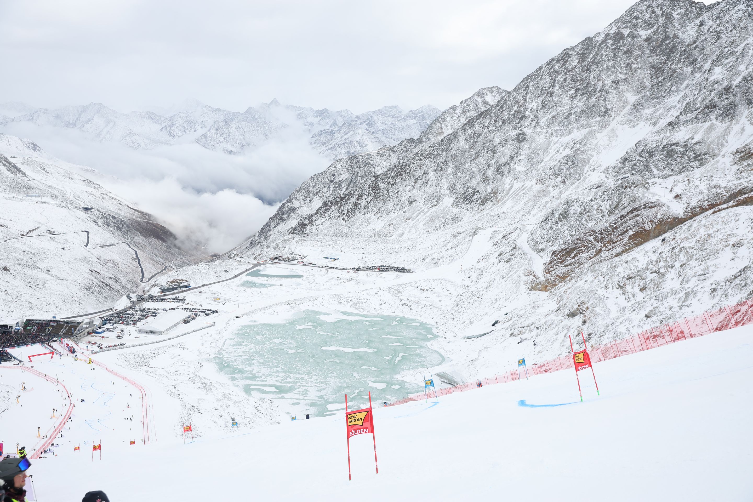 Falling snow and fog made racing particularly tough on the Rettenbach Glacier, with the second run pushed back an hour and the start of both runs lowered.