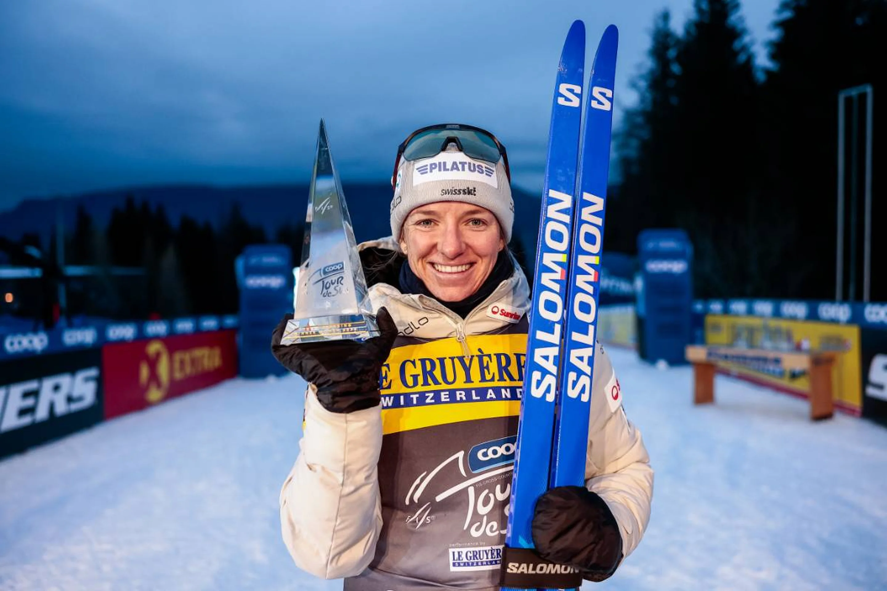 She has two second places in the Coop FIS Cross-Country World Cup sprint standings to her name. Climbing on top of the podium after an intense Tour de Ski, however, is something else.