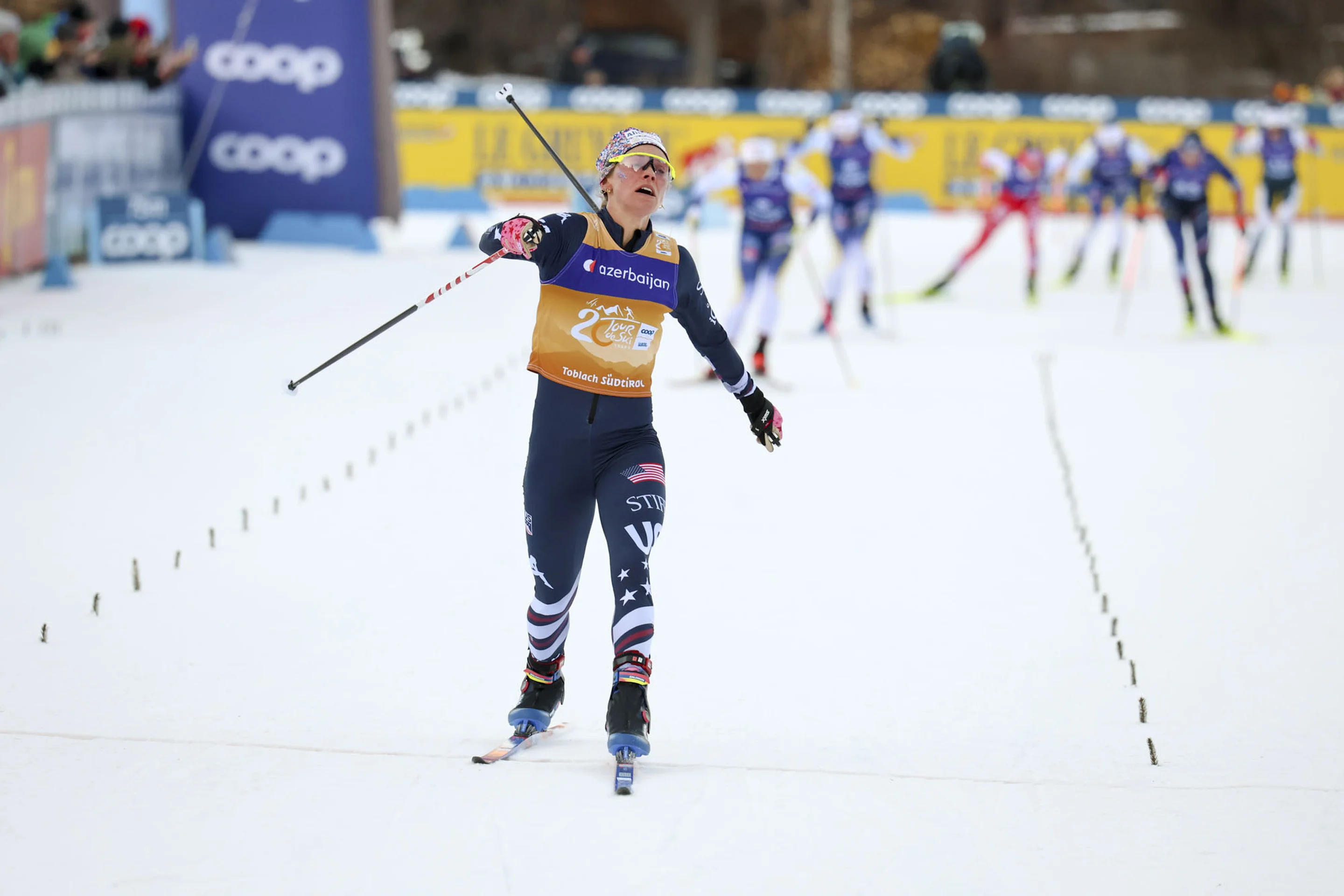 Diggins won two of the Tour’s six stages, making it to the podium in four. Apart from her victories – in the 20km Pursuit Classic and the Tour-debuting 5km Heat Mass Start Free – and Sunday’s second place, she finished third in Toblach’s 10km Interval Start Classic.