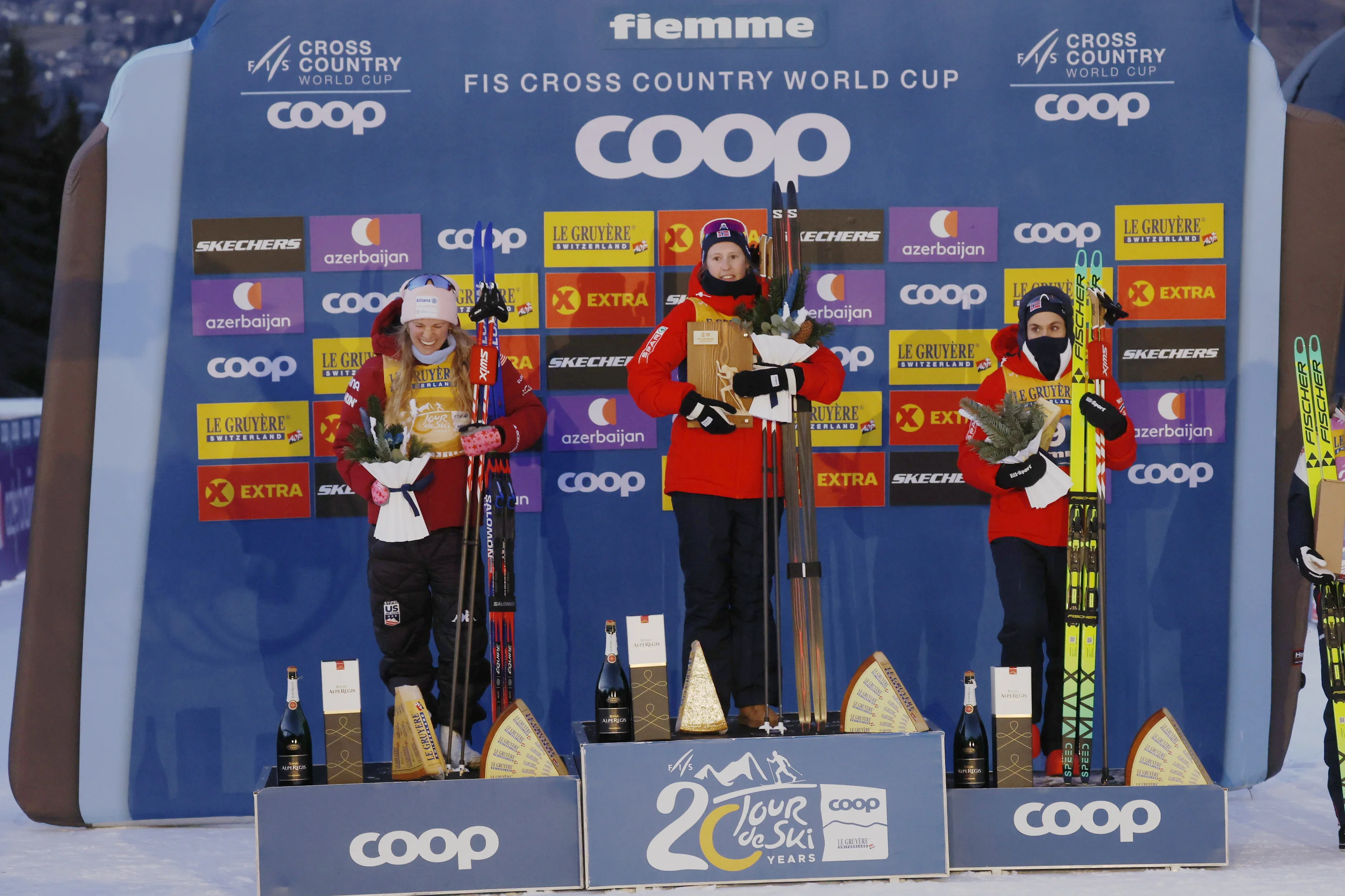 Two-time Tour de Ski champion Heidi Weng claimed third place in the Overall standings, finishing 2:31.6 behind the winner.