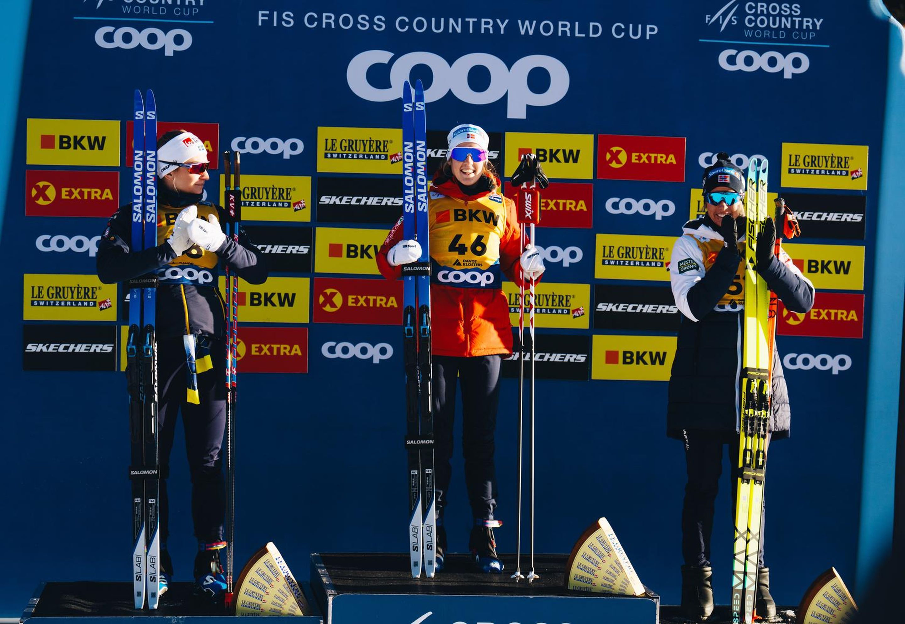 The podium from left Moa Ilar (SWE), Karoline Simpson-Larsen (NOR) and Astrid Oeyre Slind (NOR) @FIS/ActionPress/Quentin Joly
