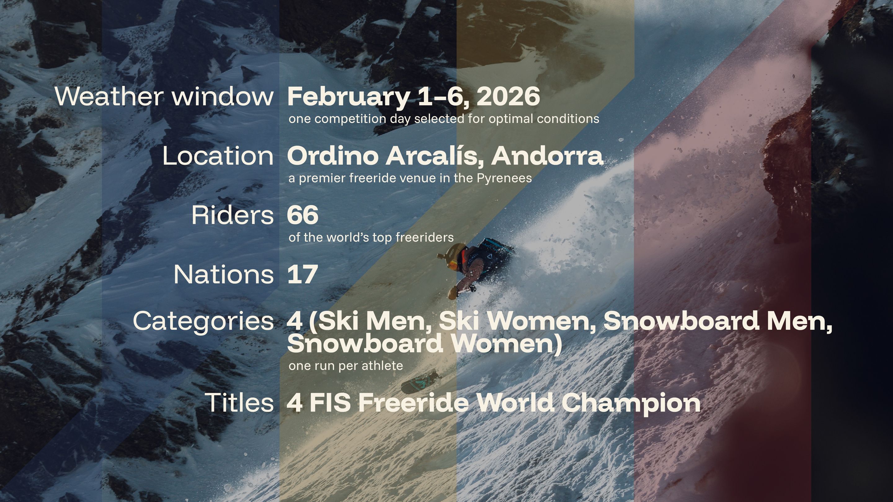 From February 1–6, 2026, the legendary terrain of Ordino Arcalís, Andorra, will host the first-ever FIS Freeride World Championships, a historic milestone for the sport of freeride skiing and snowboarding. Sanctioned by the International Ski and Snowboard Federation (FIS), this new championship represents the highest level of freeride competition on the global stage.