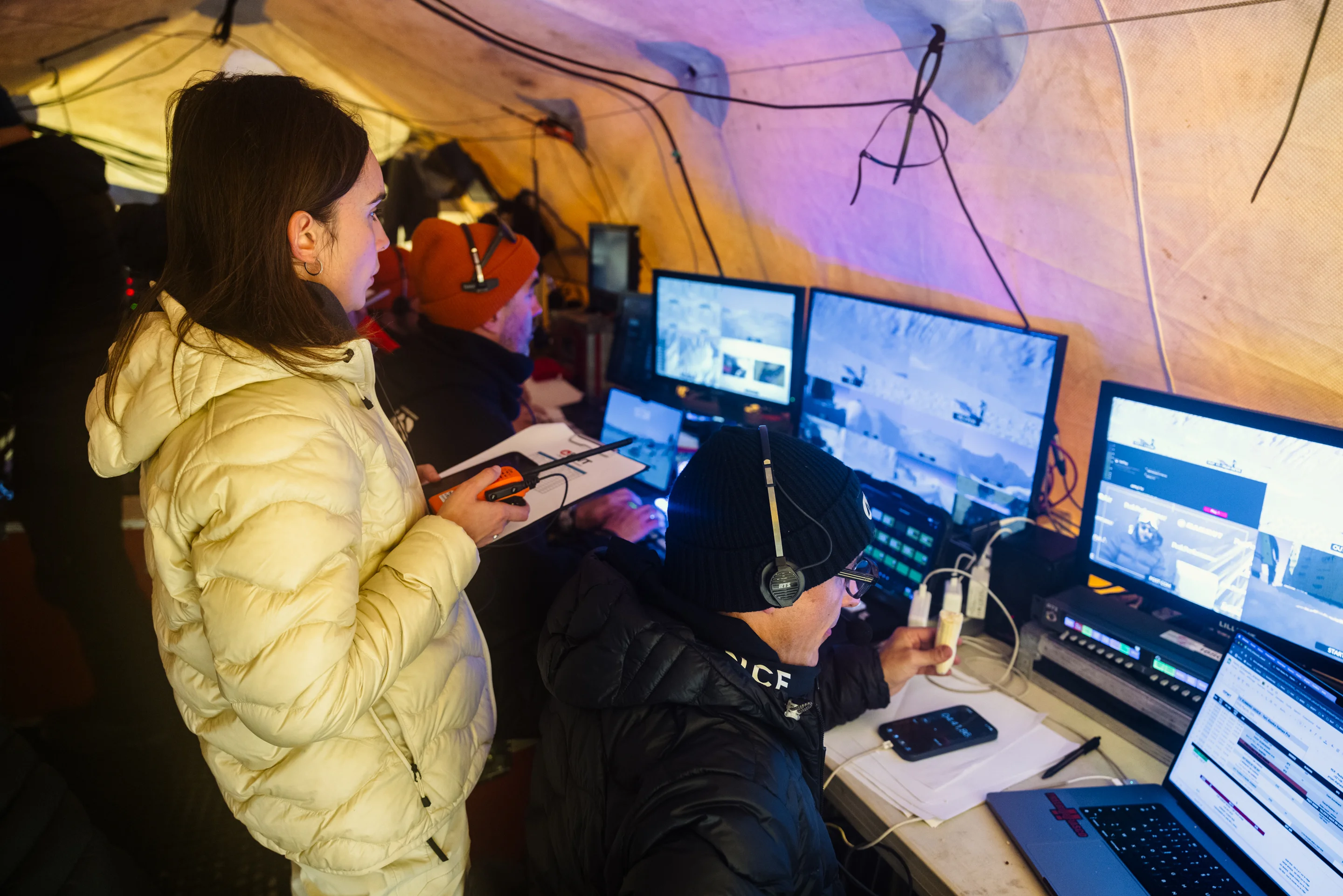 The TV production is also very dependent on the weather as delays can affect scheduling as well as equipment. “On race day, my first priority is to bring the people to the mountain safely,” says Vigneau. “Secondly, to turn on the whole broadcast setup. When it gets very cold, we don’t stop the power of the setup because we want to avoid fog and freezing within the cameras.