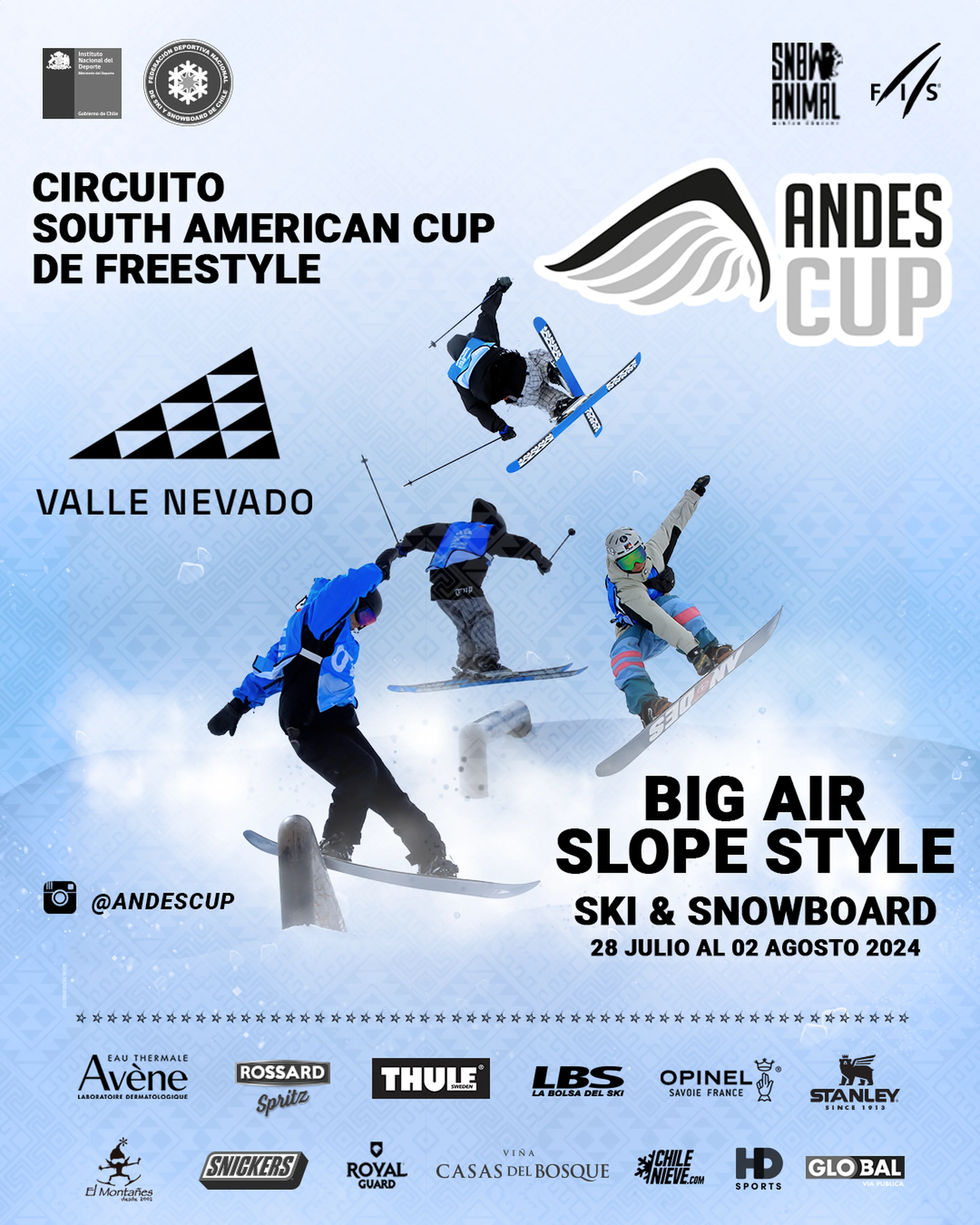 “We are excited to receive athletes of South America and the world in one of the best snow parks of South America in Valle Nevado,” says Nico Carvallo, chief of the Andes Cup, “The Andes Cup will be a platform for South American and athletes from around the world to prepare for the 2024/2025 season and to share in the unique Cordillera de los Andes.”
