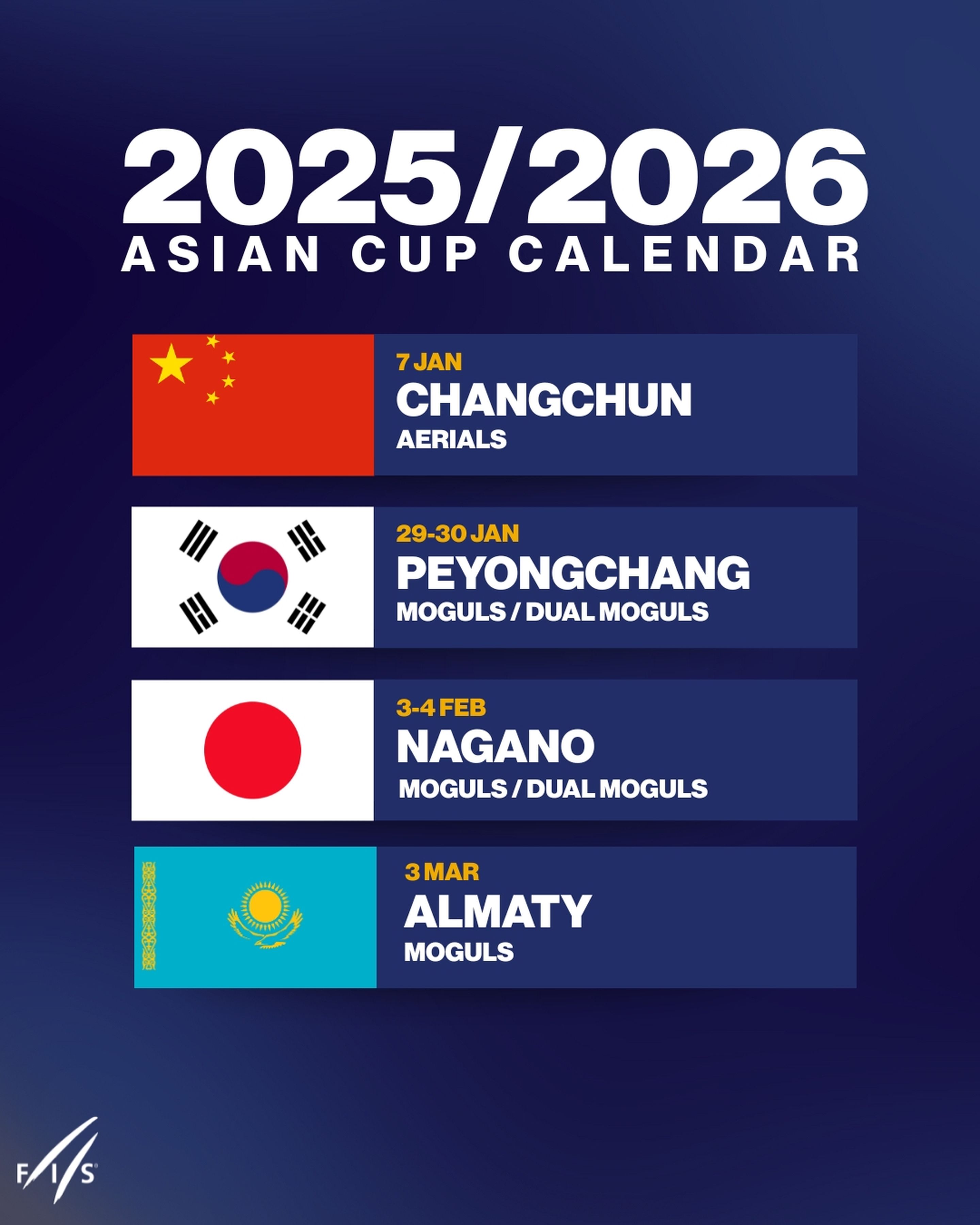 The FIS Freestyle Asian Cup continues to grow in prominence, reflecting the rapid expansion of freestyle skiing across Asia. The 2025/26 season spans four nations, bringing together a full slate of moguls, dual moguls, and aerials events across the continent.