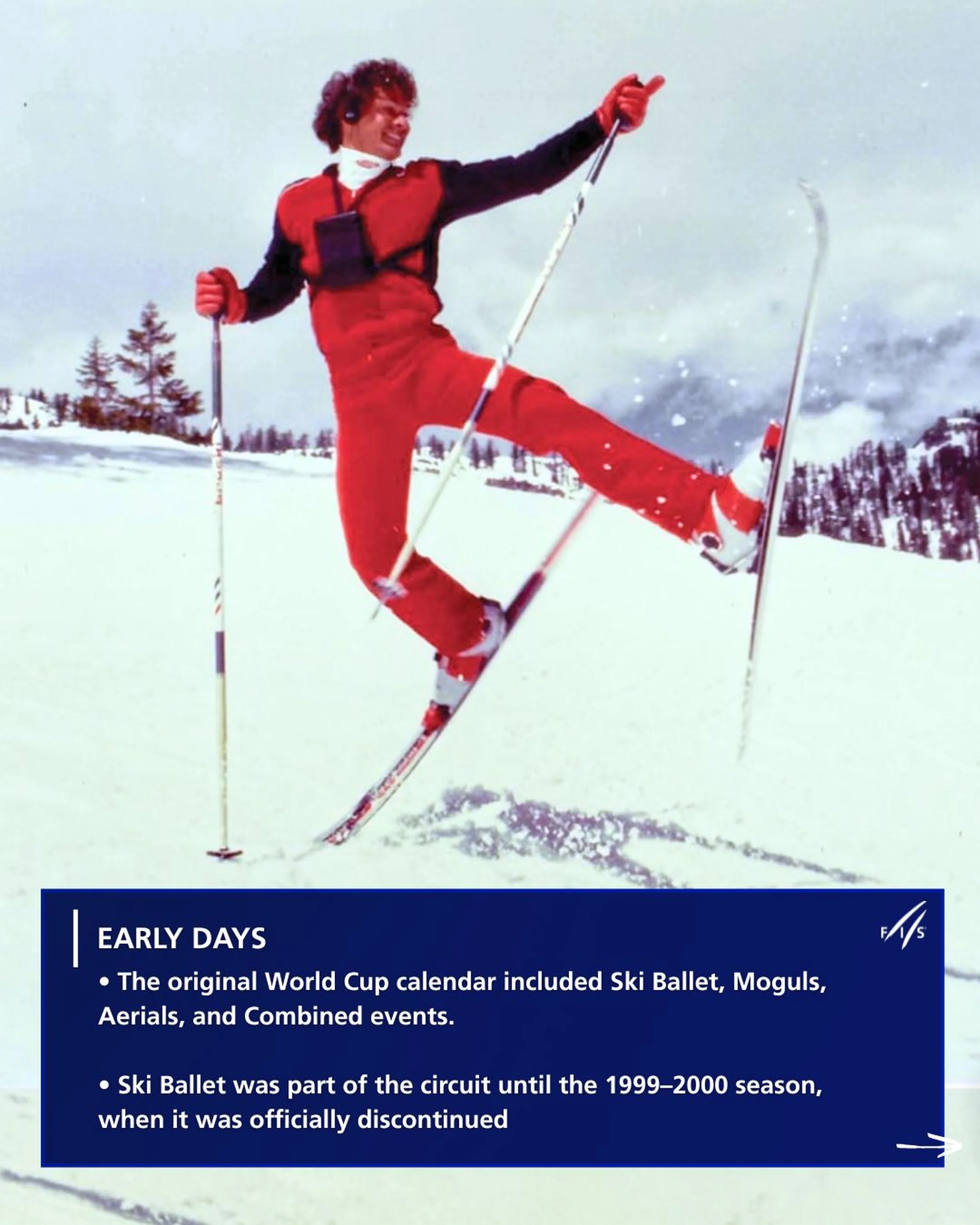 In the early years, the World Cup featured a wide variety of events, including ski ballet and combined formats. Ballet remained part of the circuit until the 1999–2000 season, after which it was discontinued.