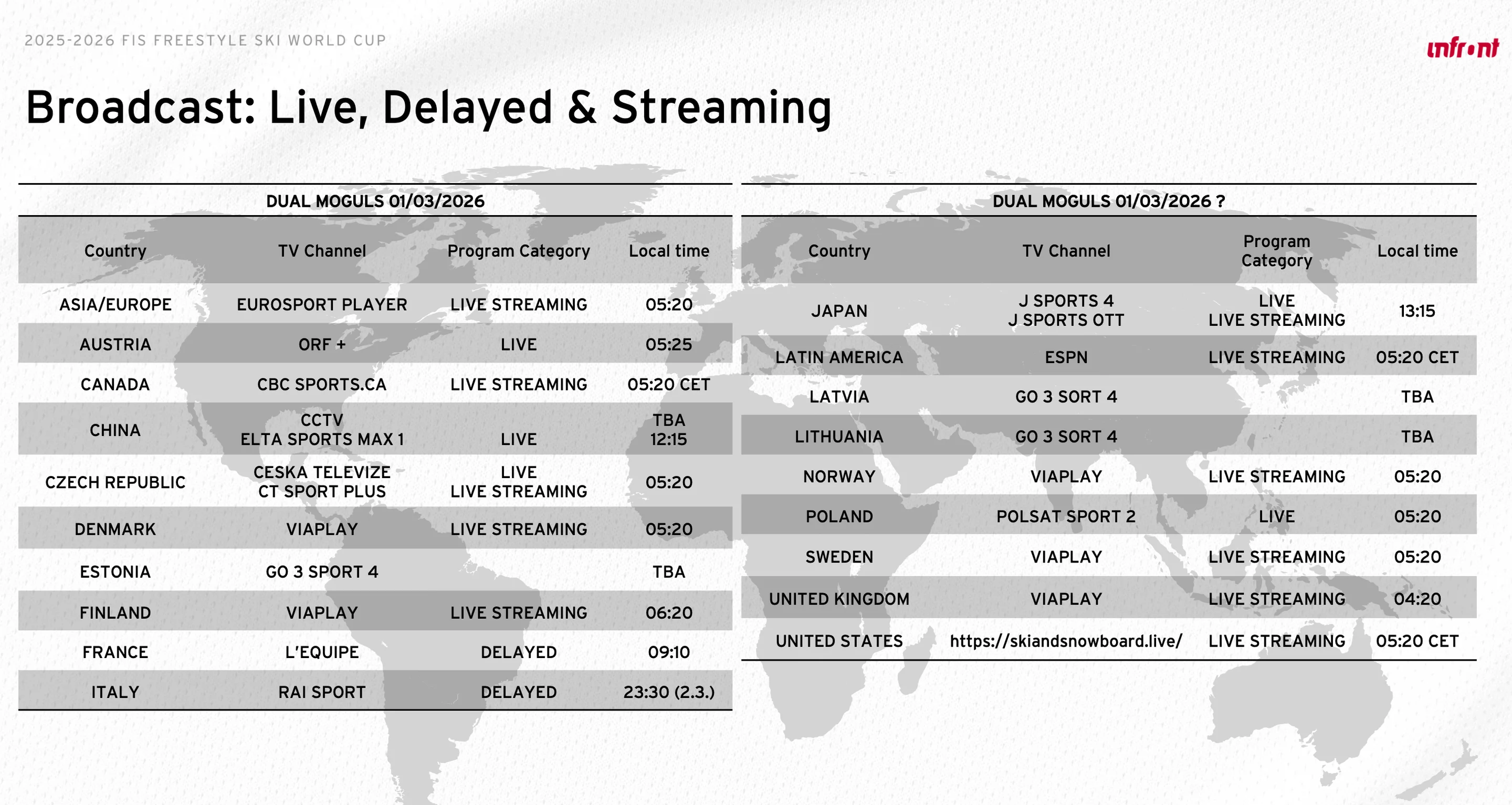 TV broadcasts will be available for fans to follow the action live, while there will also be live streaming on FIS TV.