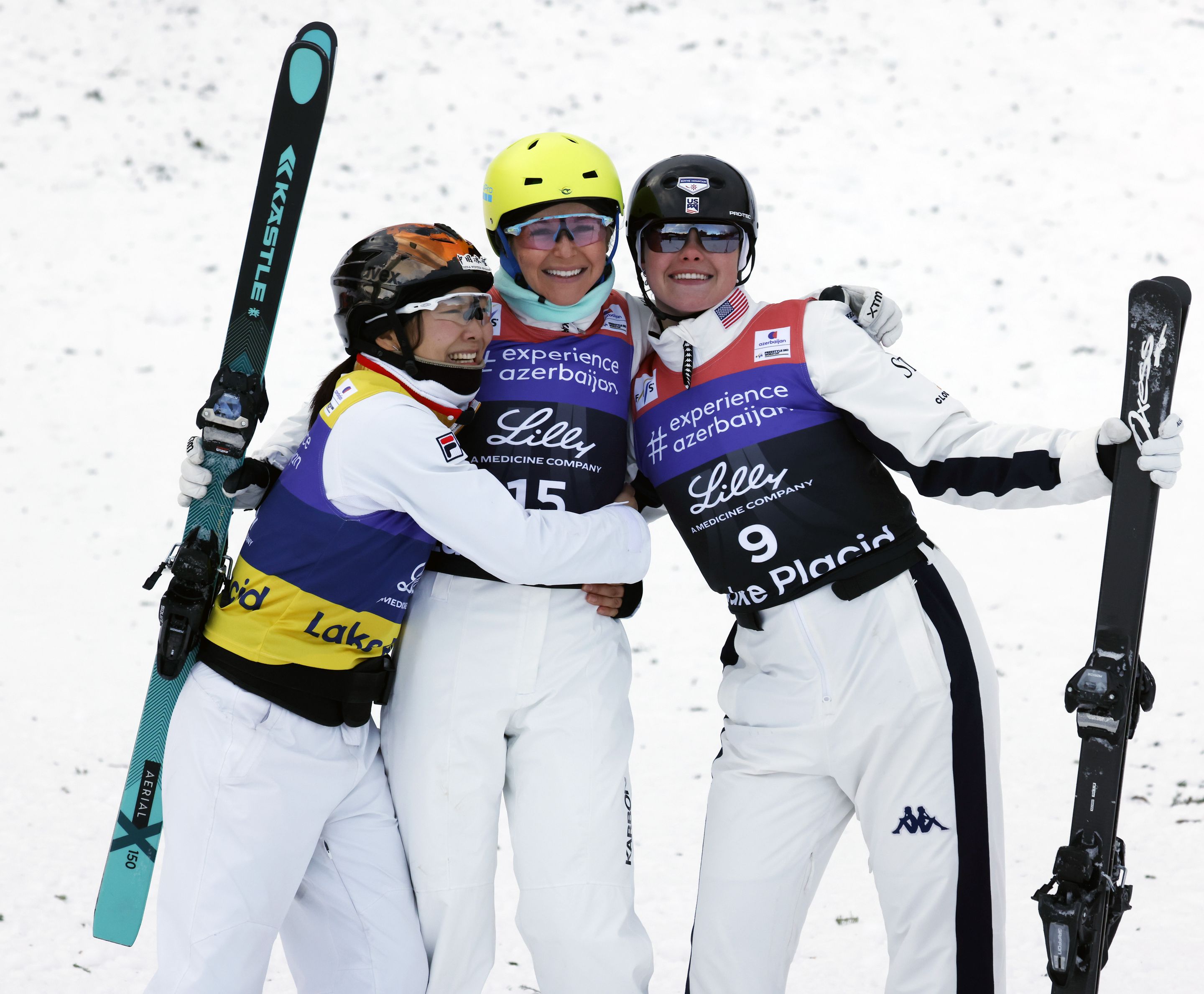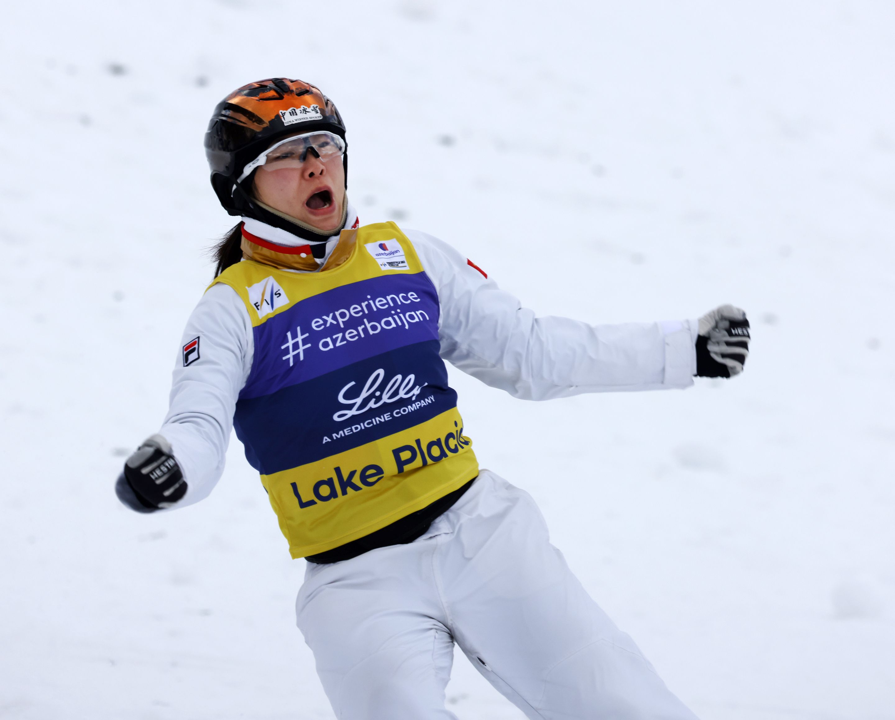 She scored 95.88 points in the women’s Aerials, enough to put her ahead of competitors with more recent, more illustrious accolades. Reigning Olympic champion Xu Mengtao (CHN) was second with 94.01 points, while reigning world champion Kaila Kuhn (USA) was third with 92.29.