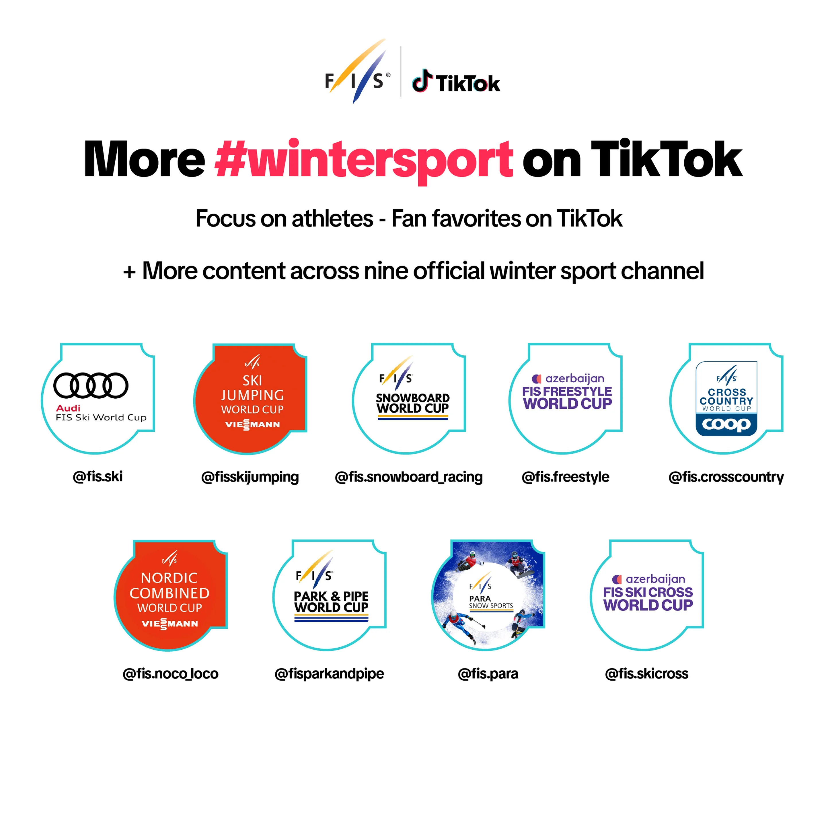 Fans can tune into all their favorite winter sports competitions at nine dedicated FIS TikTok channels: