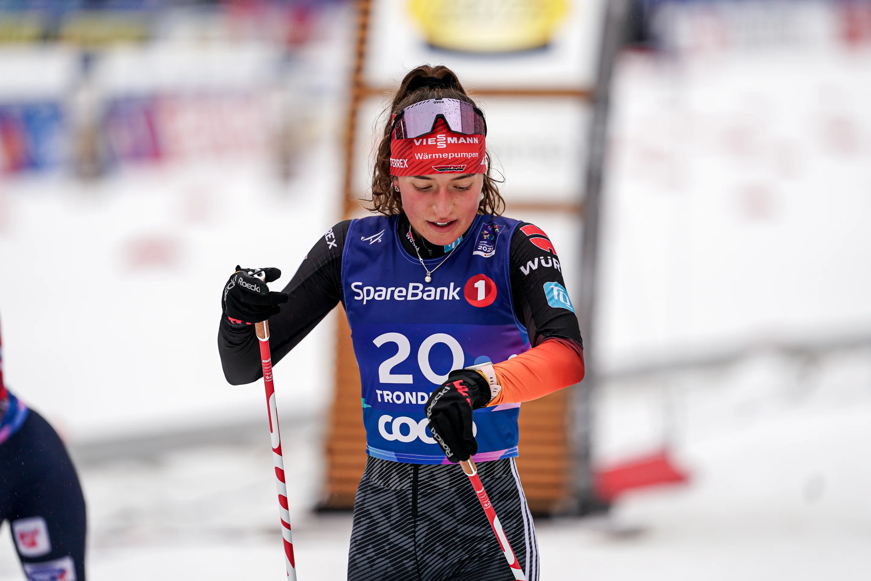 Armbruster is ranked fourth in the jumping standings but struggled on the HS102 normal hill in Trondheim, scoring 110 points from an 89.0m jump in the Mass Start before an 87.0m jump for 88.3 points in the Gundersen left her in 20th place and too much time to make up in the cross-country to contend for a medal.