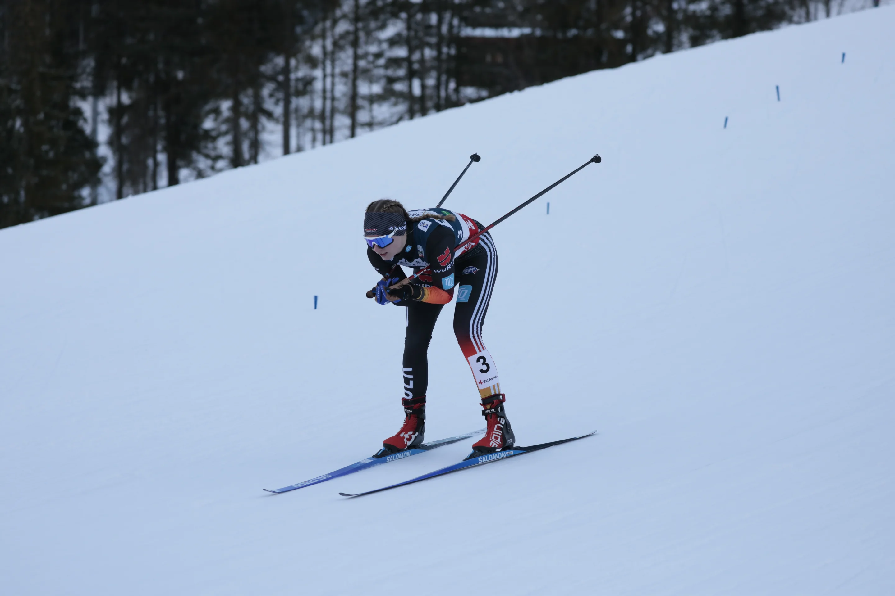 Armbruster proved the strongest challenger to finish second, 28.5 seconds back, her second podium of the season after another second place in Lillehammer.