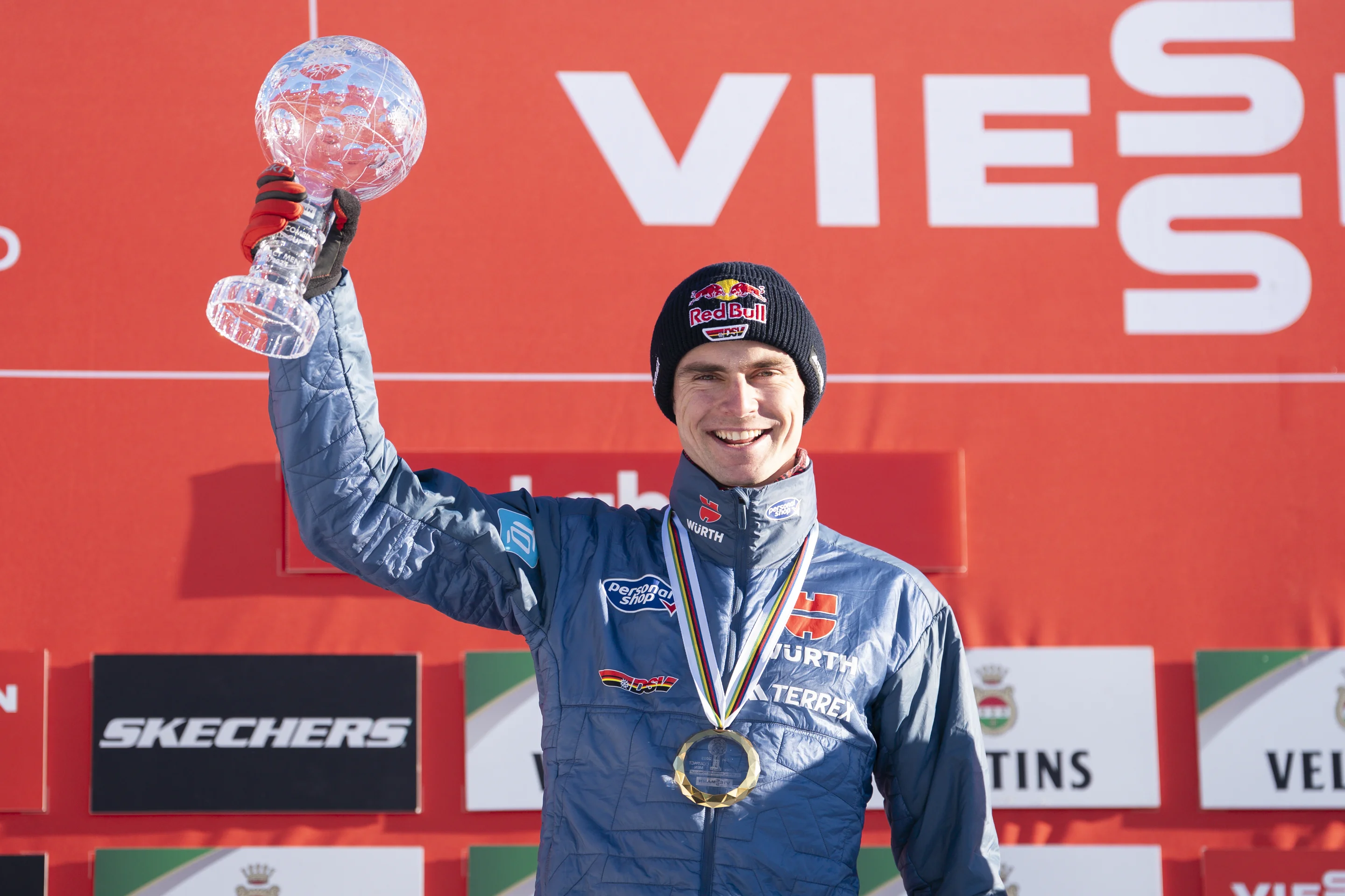Geiger was presented with his first Crystal Globe after succeeding the great Jarl Magnus Riiber, who decided not to compete in Lahti after bowing out in Oslo last weekend.