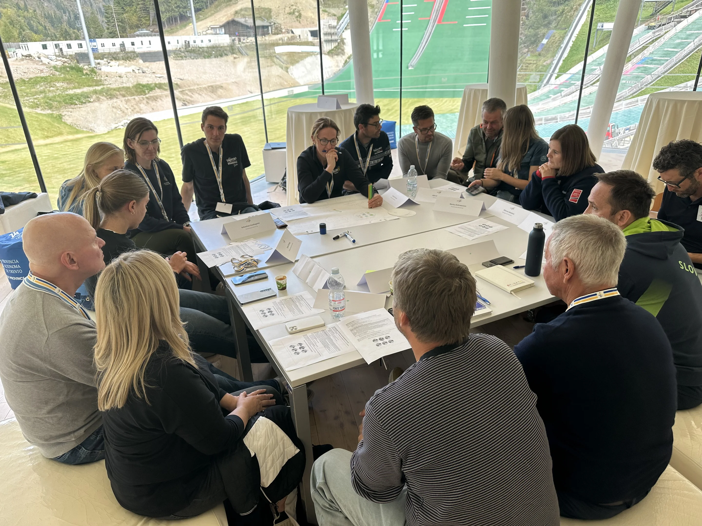 The seminar began on Friday at the iconic Ski Jumping venue in Predazzo, where the three FIS Nordic Race Directors – Michal Lamplot (Cross-Country), Lasse Ottesen (Nordic Combined), and Sandro Pertile (Ski Jumping) – welcomed participants and set the tone for a productive weekend. The opening day concluded in true Italian style: a relaxed social dinner, provided by the hosts from Fiemme World Cup, filled with pizza, lively conversations, and laughter. It was a perfect opportunity for participants and FIS staff to connect, exchange ideas informally, and create a positive atmosphere for the workshop ahead.