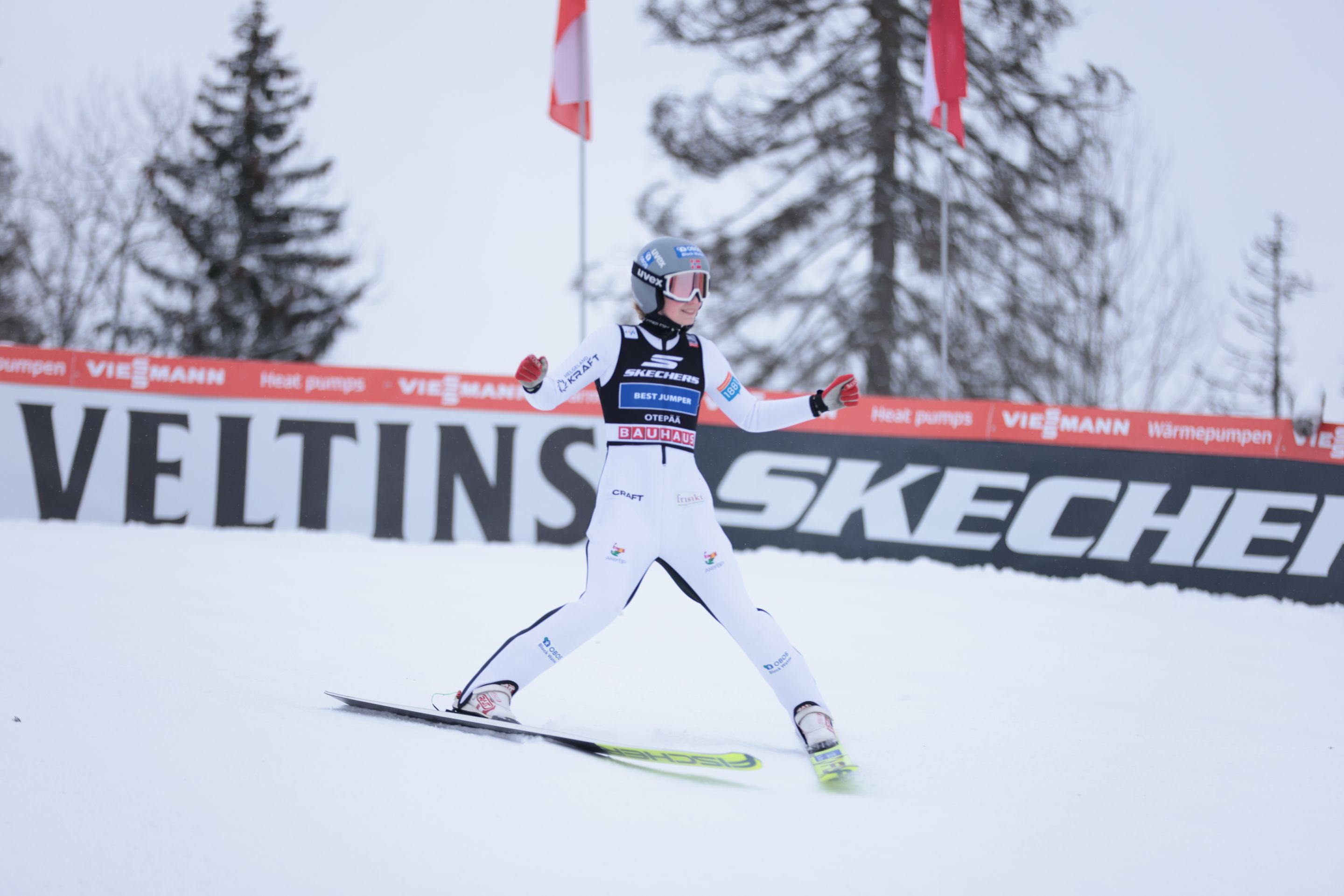 With the wind in Estonia’s winter capital finally relenting after two days in which no jumping was possible, the women were able to compete on the HS97 hill for the first time since Thursday’s PCR competitions.