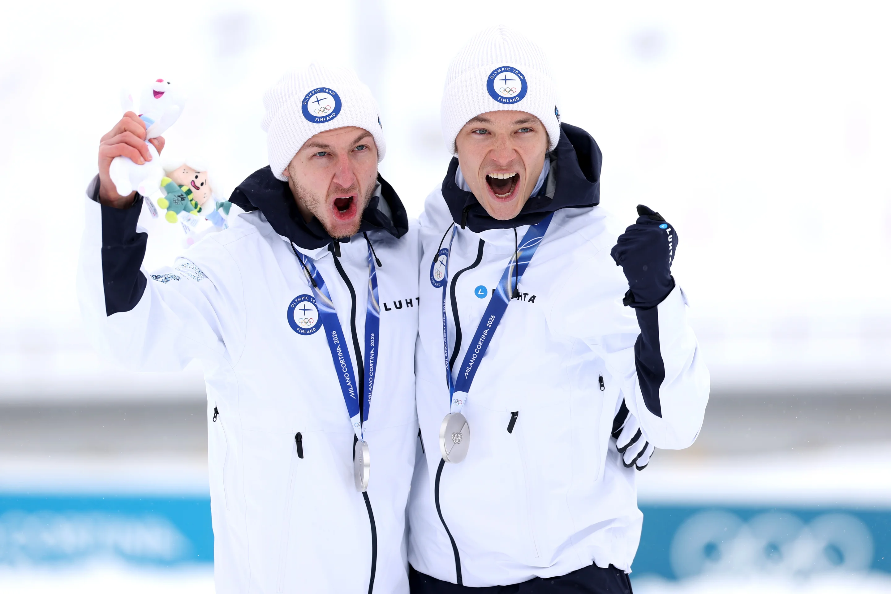 But despite a consistent campaign in which he achieved seven more top-six World Cup finishes before the Winter Olympics, Ruka was Herola’s only podium appearance until Val di Fiemme, where he won his first Olympic medals at his fourth Games with individual Large Hill bronze and silver with Hirvonen (below) in the Team Sprint.