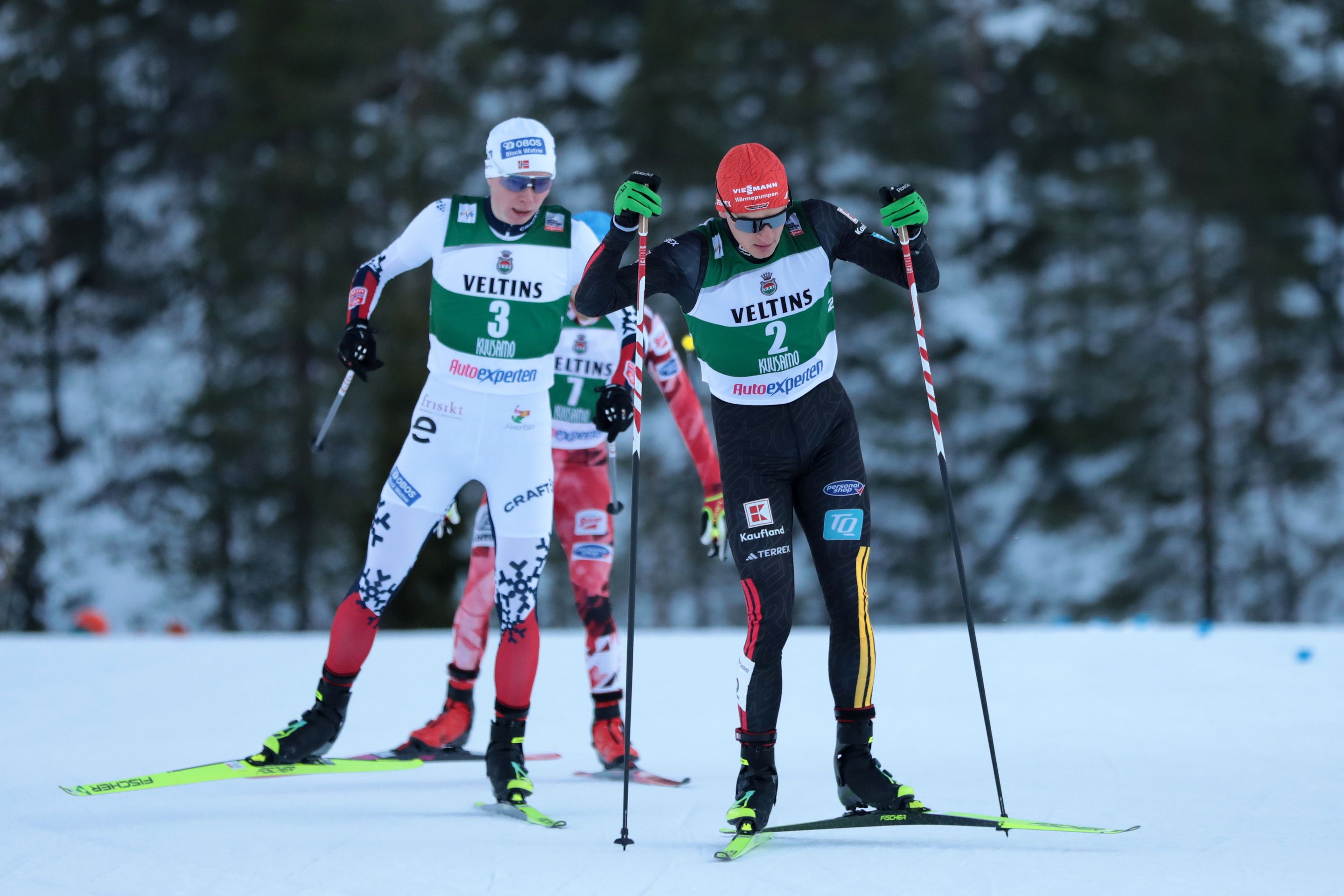 Kristjan Ilves (EST) and Yellow Bib holder Lamparter finished 20.6 and 21.2 seconds back in sixth and seventh, while Jens Luraas Oftebro trailed in ninth after struggling to keep pace on a punishing final lap.