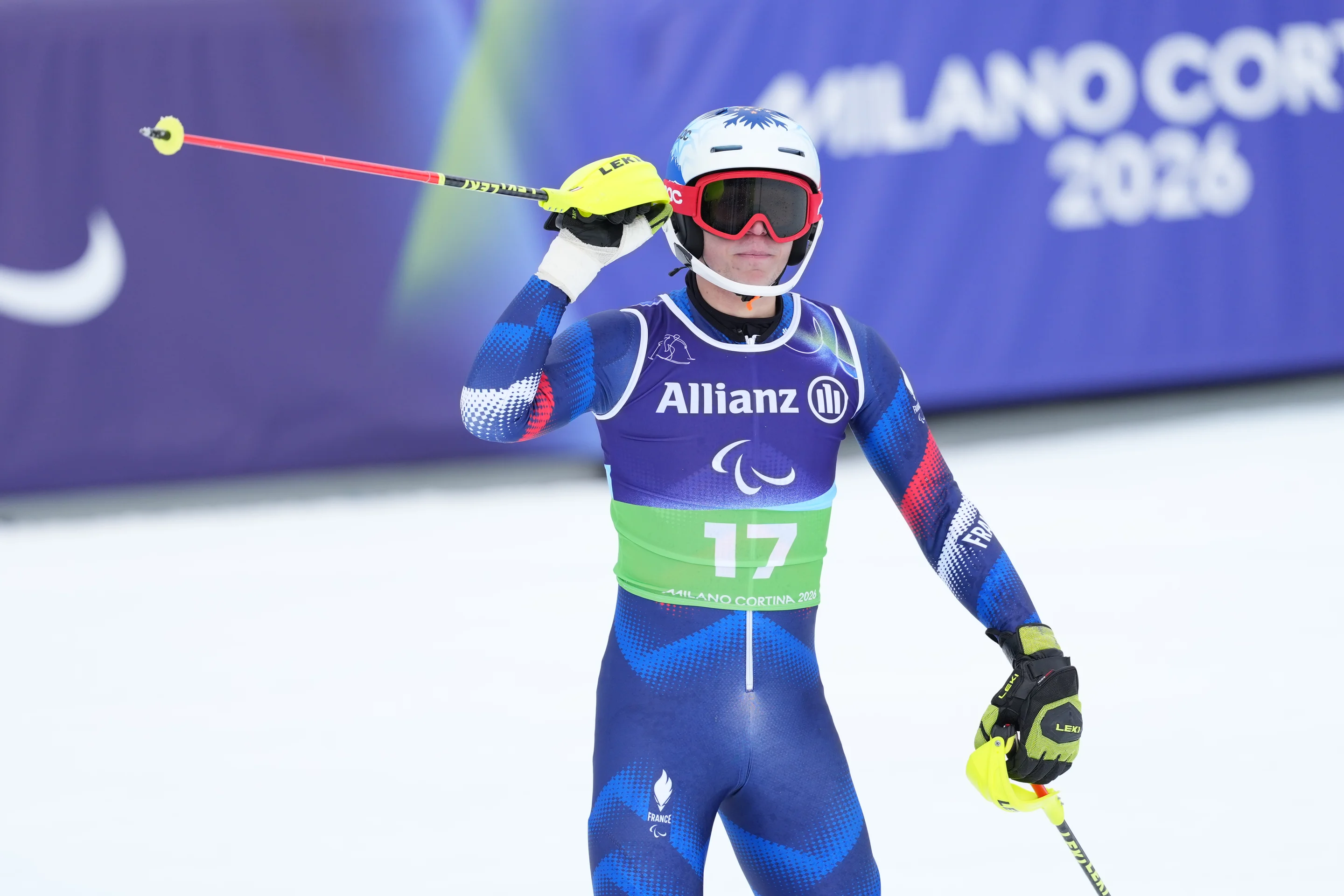 Speed double winner Robin Cuche had a DNF, collecting a gate before falling on his inside ski. Bugaev had to abandon his run with the double gold medalist still down on the course, before the Swiss eventually rose after treatment on his knee. The Russian was supremely quick on the rerun, taking the lead by one and a quarter seconds from Grochar, and had a third Paralympic Combined title in his grasp before coming to grief around 12 gates from home.