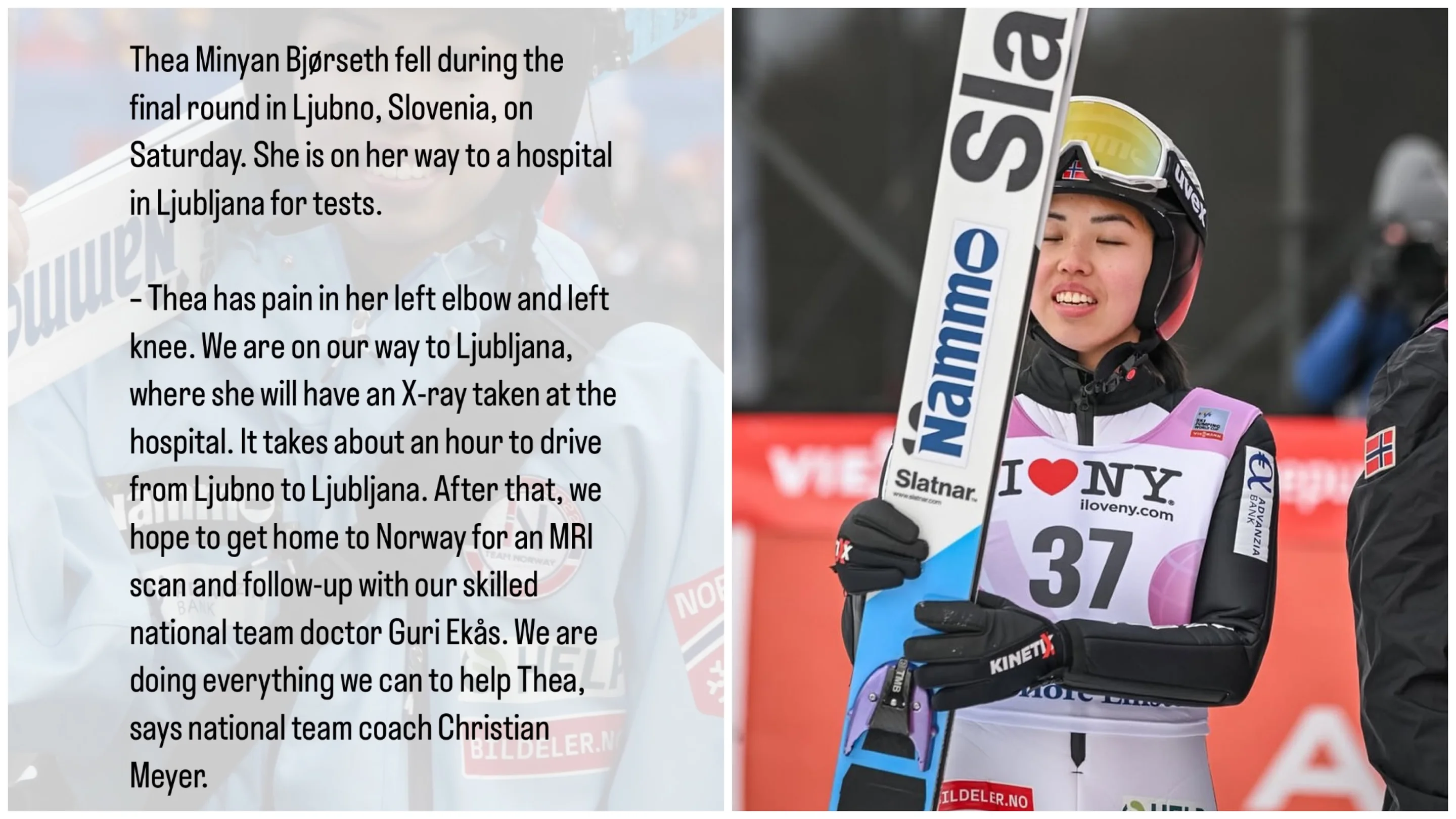 World Cup leader Nika Prevc (SLO) delivered the victory her supporters were desperate to see in her homeland, but the event in Ljubno (SLO) ended in a somewhat subdued manner after Thea Minyan Bjoerseth (NOR) suffered a dramatic crash while chasing victory.