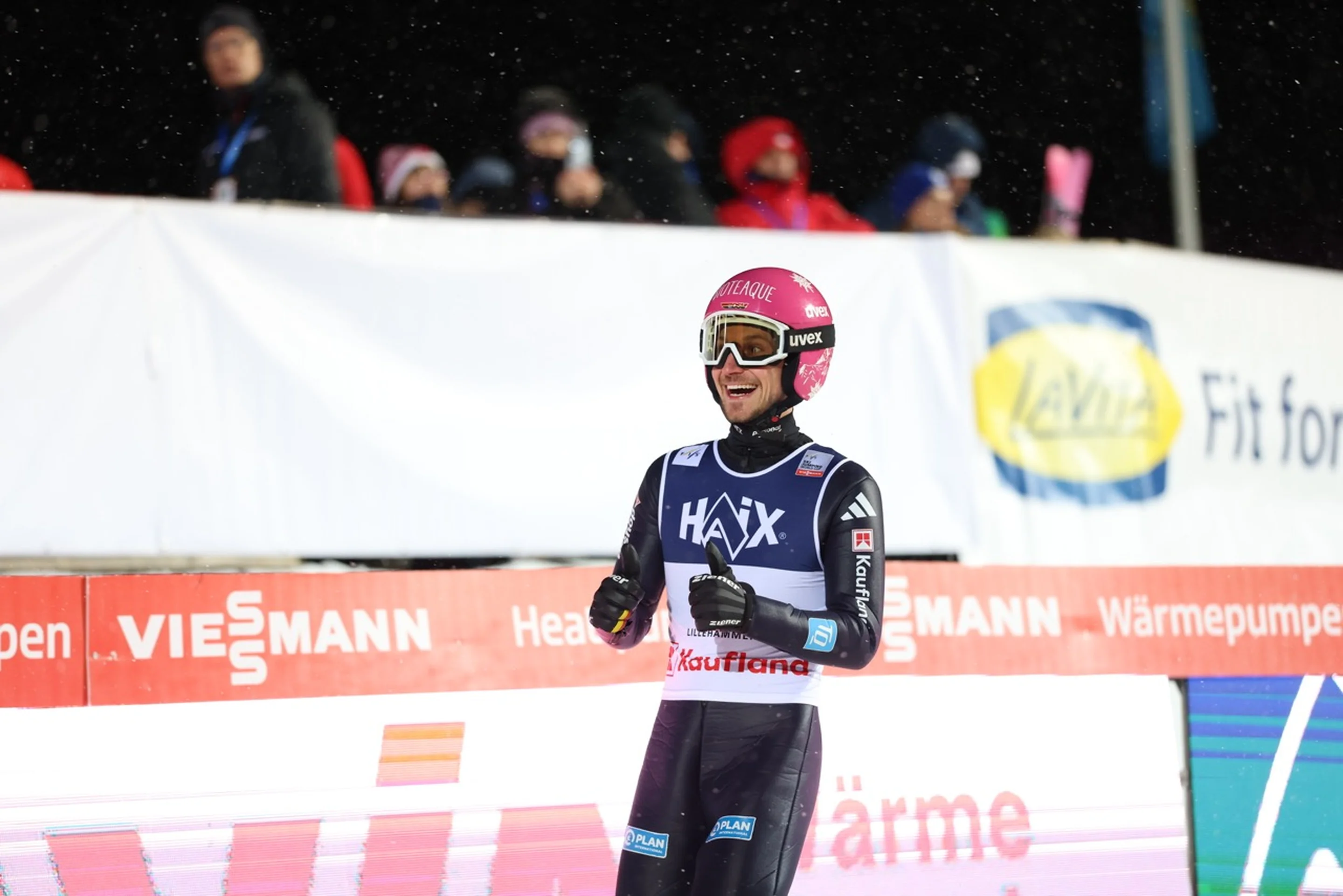 Here, he again made a strong start, with a jump of 139m scoring 143.8pts and nestling him in just behind countryman Philipp Raimund (GER).