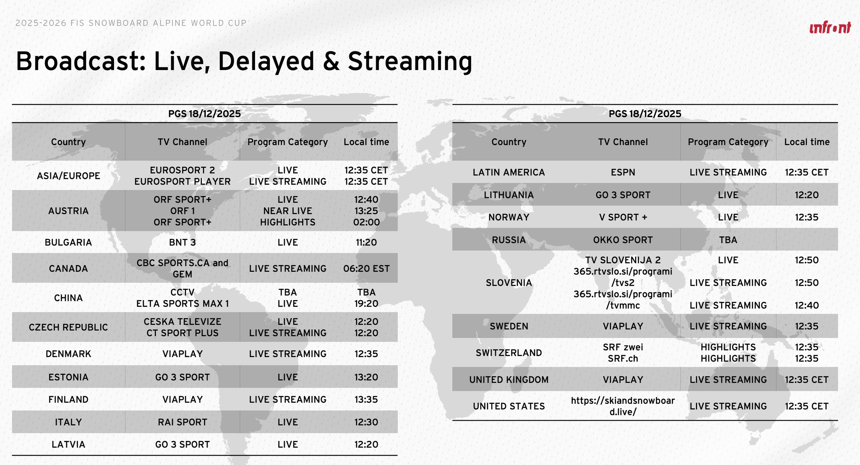Aaron March (ITA) won his first career PGS race in Cortina on Saturday. He will go for two in a row. He will get an extra boost from the Italian crowd once again.