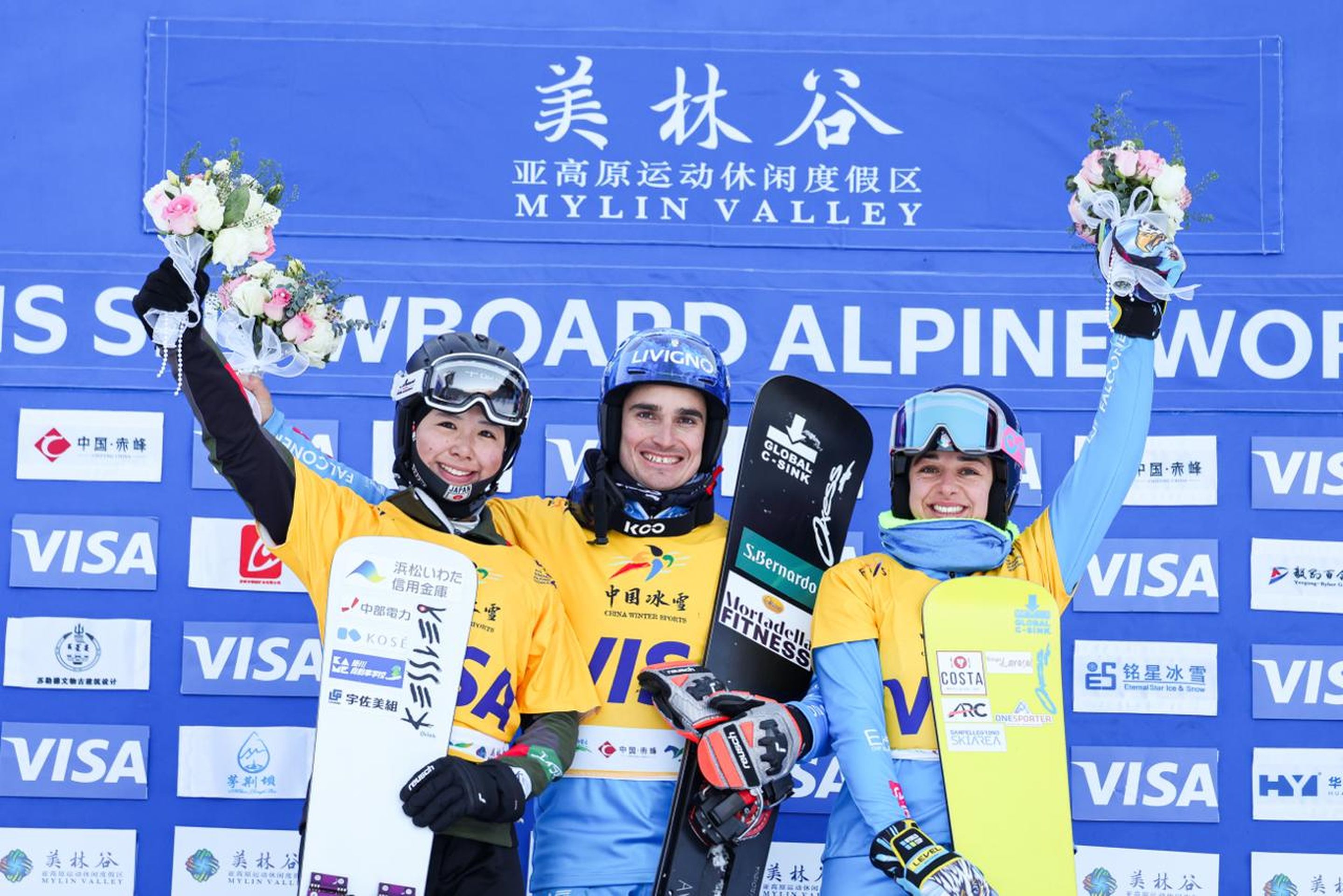 It was a thrilling day two of the Visa FIS Snowboard Alpine World Cup in Sunny Mylin, China with icy conditions. The PGS turns were extra challenging but the best in the world persevered through to fill the podium places. There were some spills amidst the thrills but in the end, Tsubaki Miki (JPN) and Mirko Felicetti (ITA) claimed the top prizes.