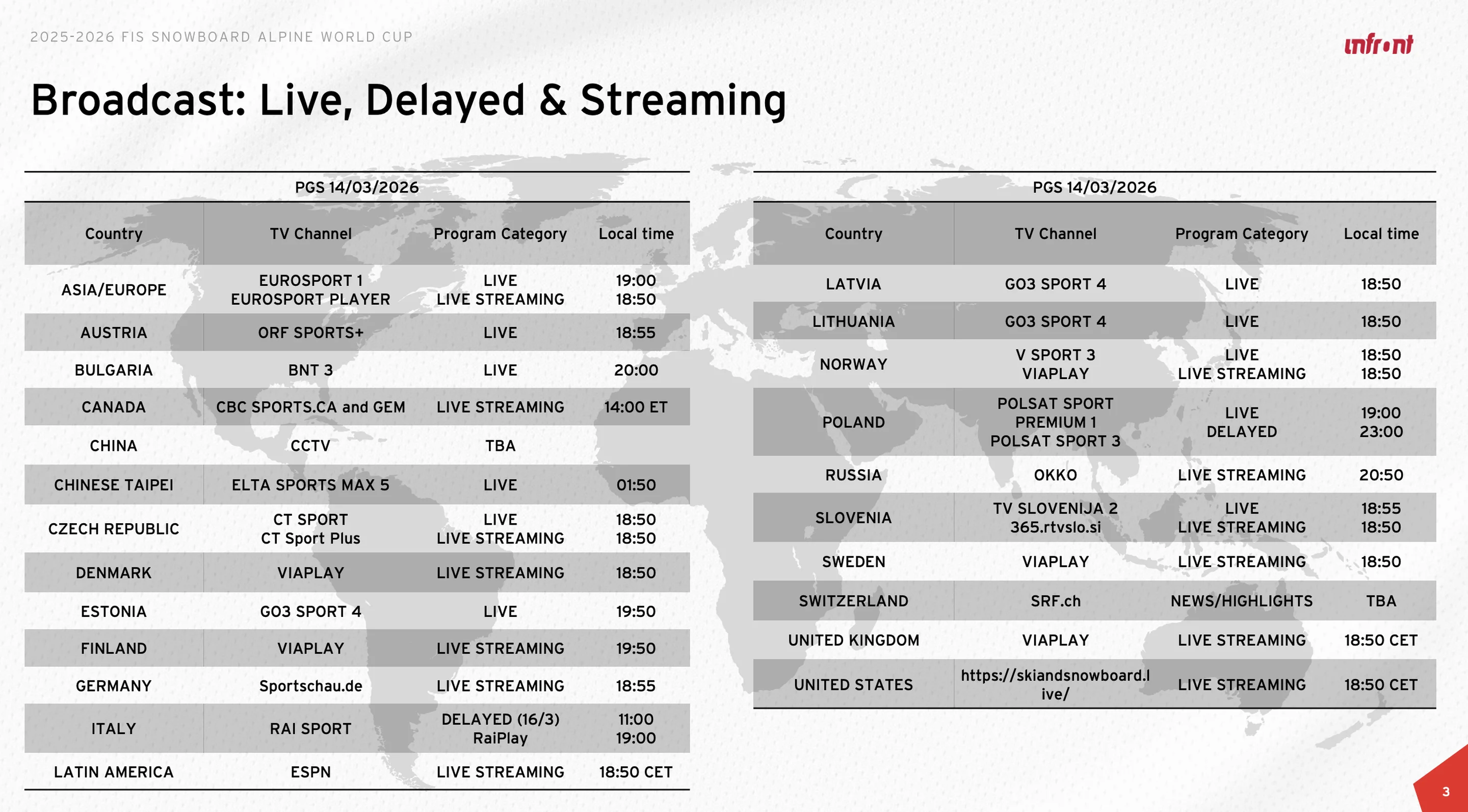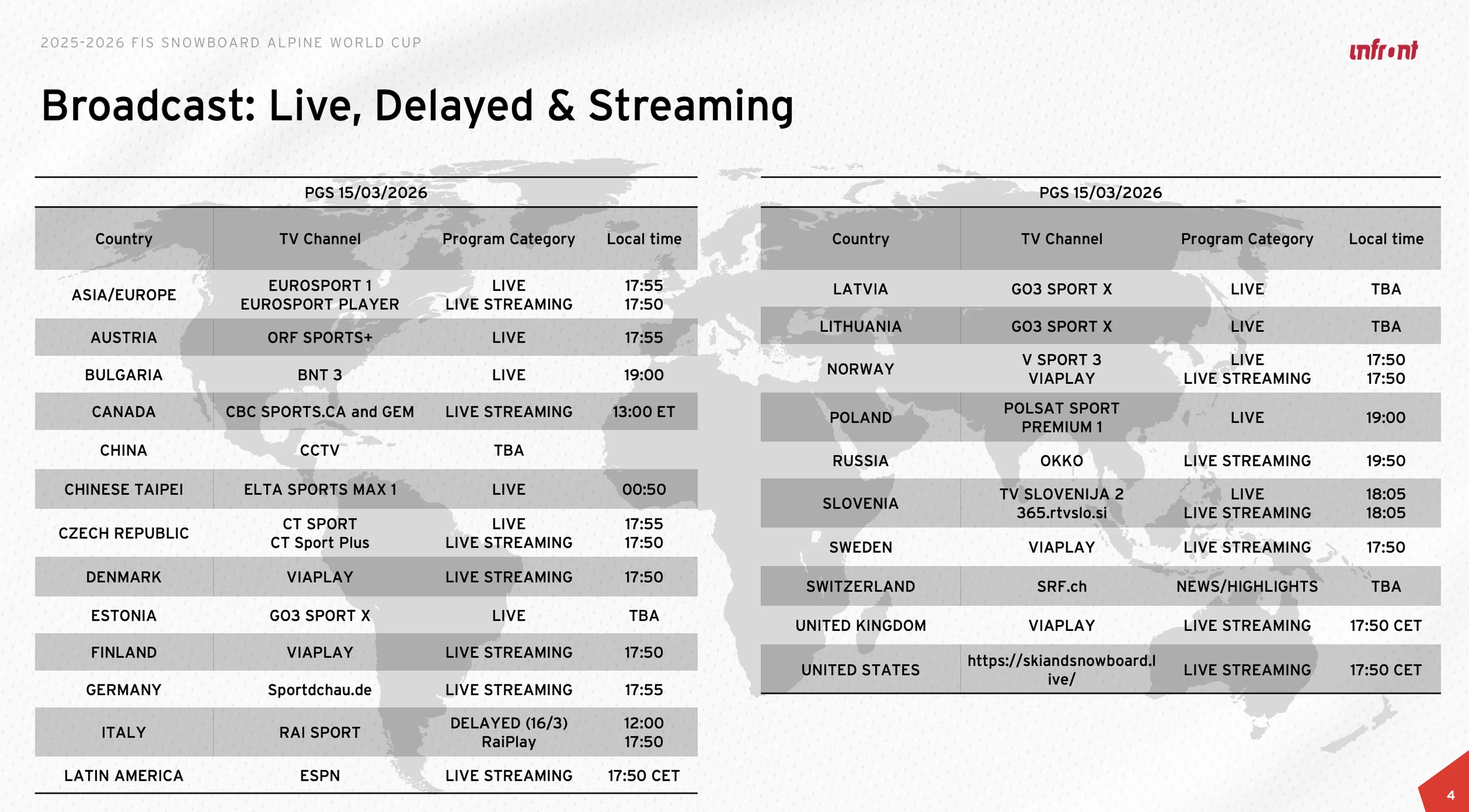 On the men’s side, Maurizio Bormolini (ITA) leads the way in the PGS standings. He is on a three-race win streak after missing out on a medal at the Milano Cortina 2026 Winter Olympics.